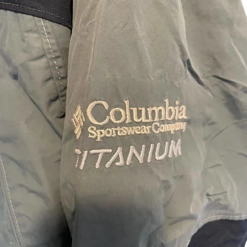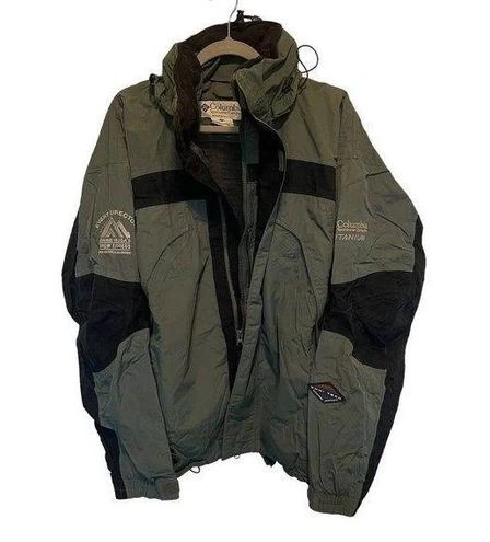 Columbia Jacket Coat Titanium Omni-Tech Olive Green Waterproof Size Extra Large, This jacket was for an event and has Event Director Multiple Sclerosis emblem on it. Multiple pockets, zip and hook and loop closure, hidden hood in collor, drawstrings for adjustment, very warm, waterproof, make an offer, Olive Green and black two tone
